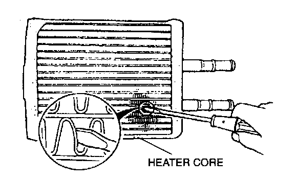 4. Verify that the heater core inlet and outlet are not distorted or damaged. Repair with pliers if necessary.