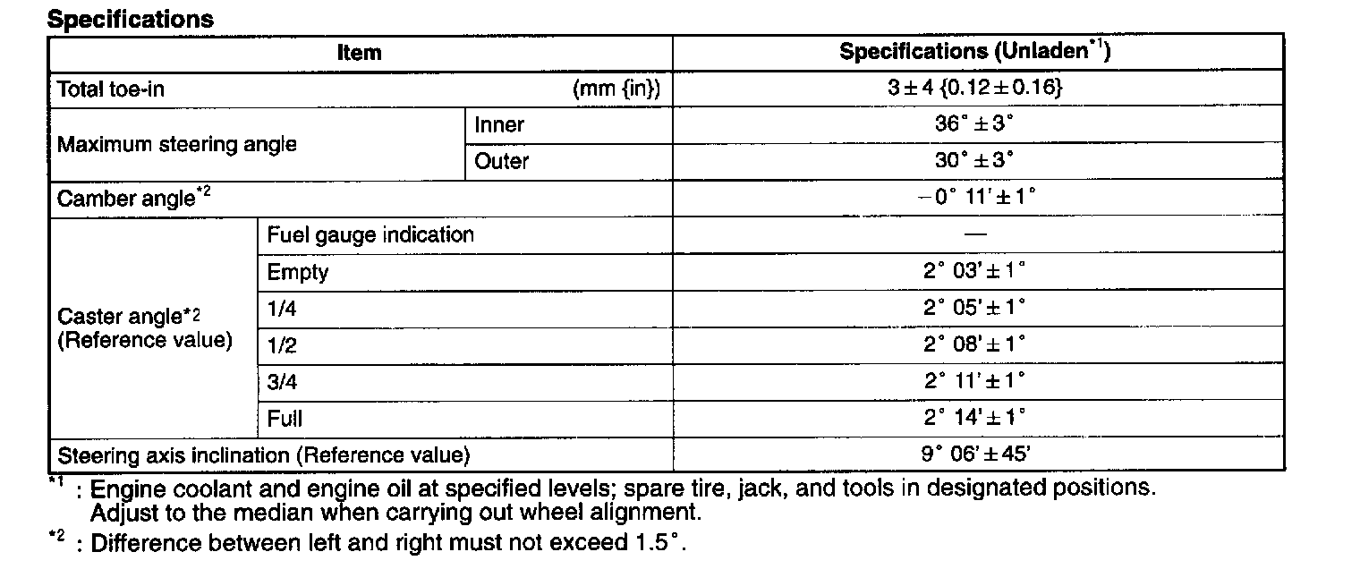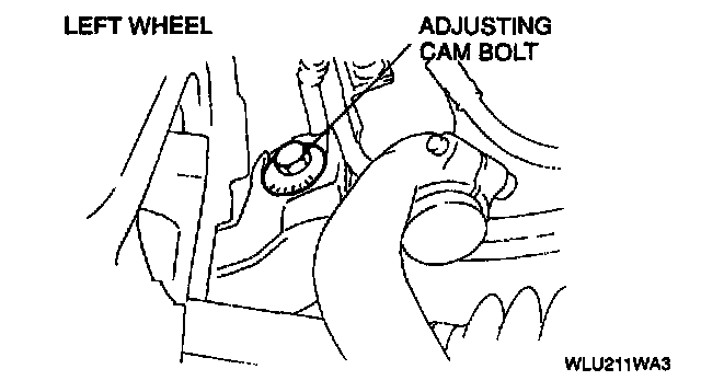2. Turn the adjusting cam bolt to provide the correct camber angle as indicated.