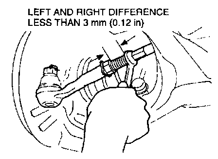 NOTE: Turning both tie rods one complete turn changes toe-in by about 15.8 mm {0.62 inch}.