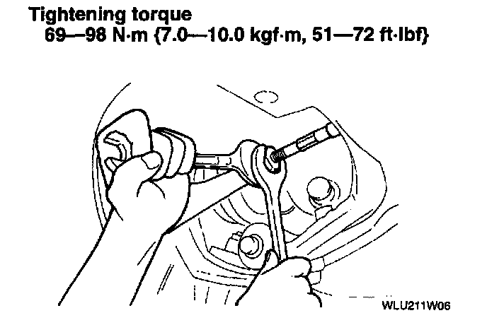 Tightening torque: 69 - 98 Nm {7.0 - 10.0 kgf.m, 51 - 72 ft. lbs.)