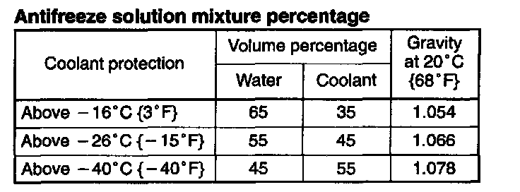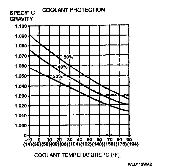 1. Measure the coolant temperature and specific gravity with a thermometer and a hydrometer.