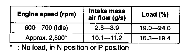 NOTE: The scan tool shows the mass air flow rate and load value.
