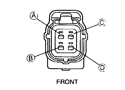2. Measure the resistance between heated oxygen sensor terminals D and C by using an ohmmeter.