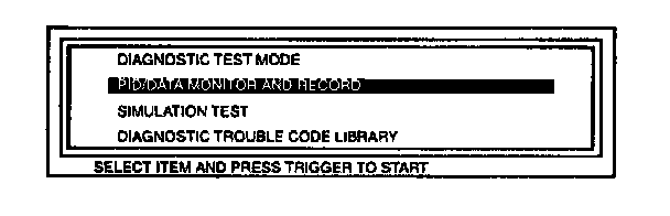 2. Referring to the NGS instruction manual, select the "PID/DATA MONITOR AND RECORD" and press TRIGGER.