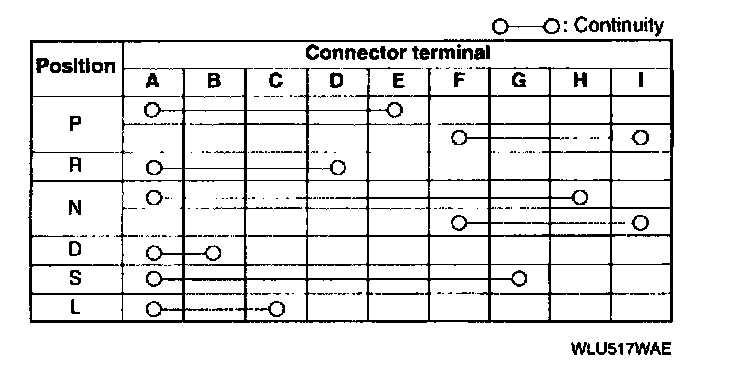 4. Inspect for continuity at the transaxle range switch.