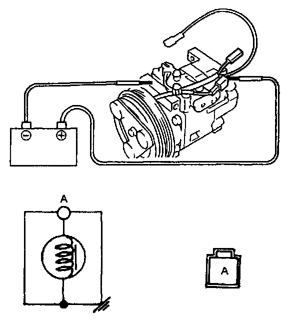 2. Connect battery positive voltage to terminal A of magnetic clutch and ground to the A/C compressor body.