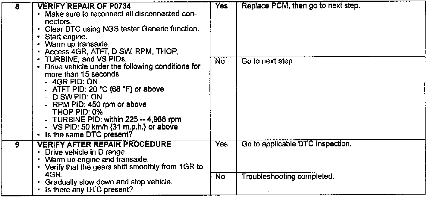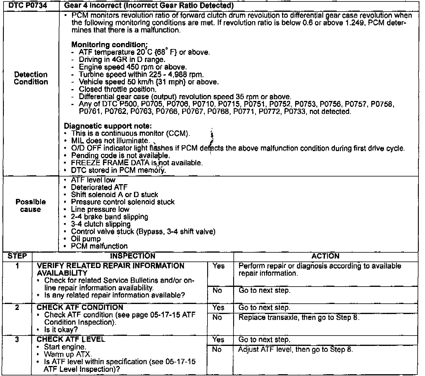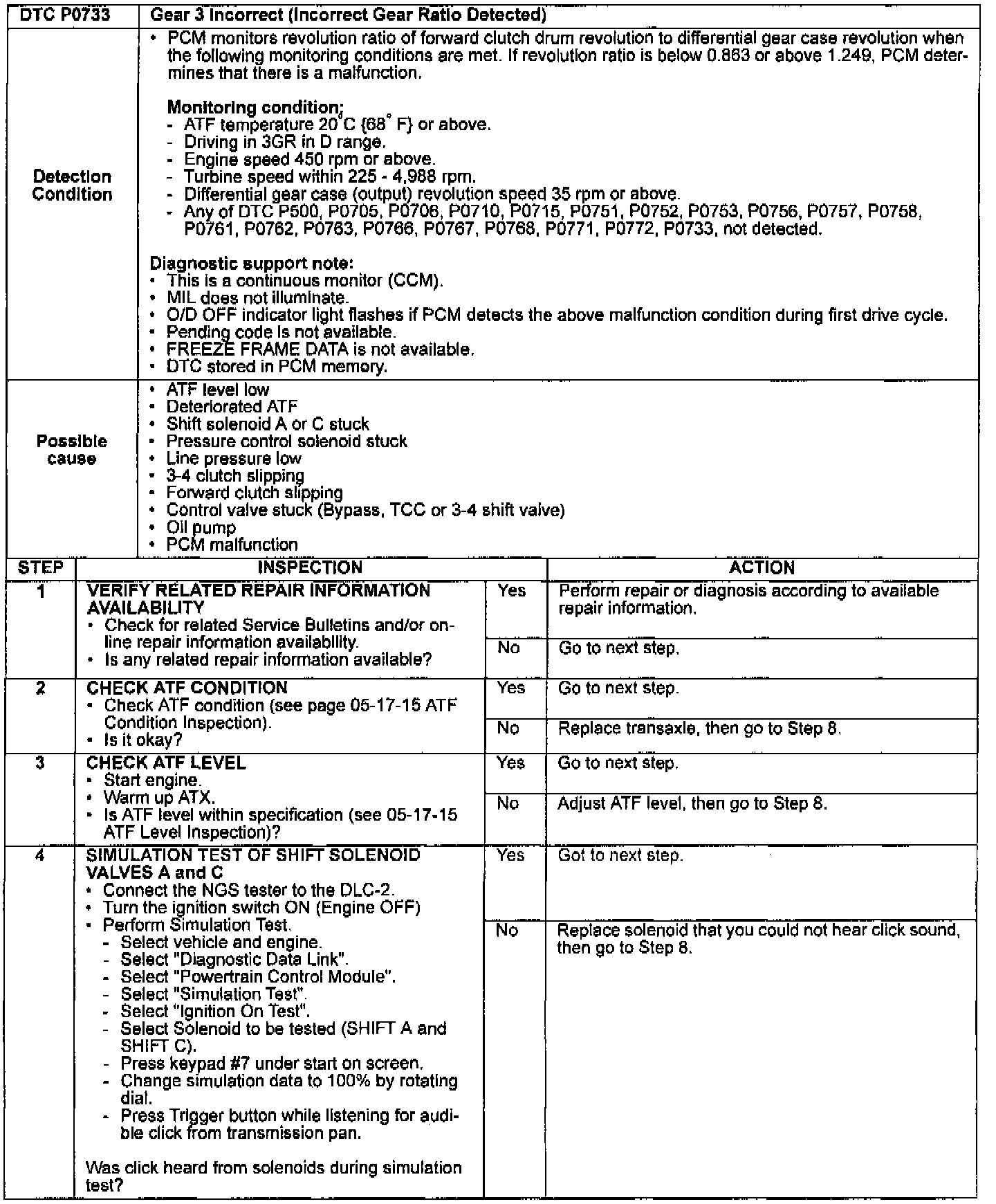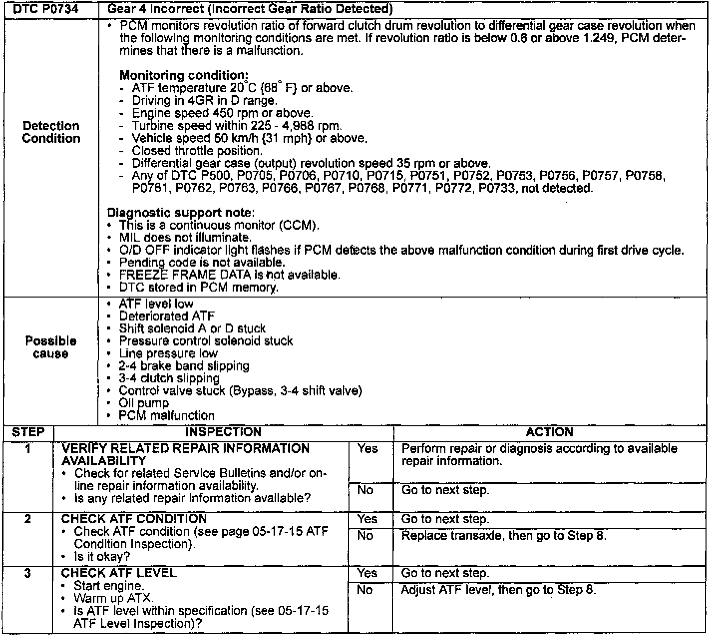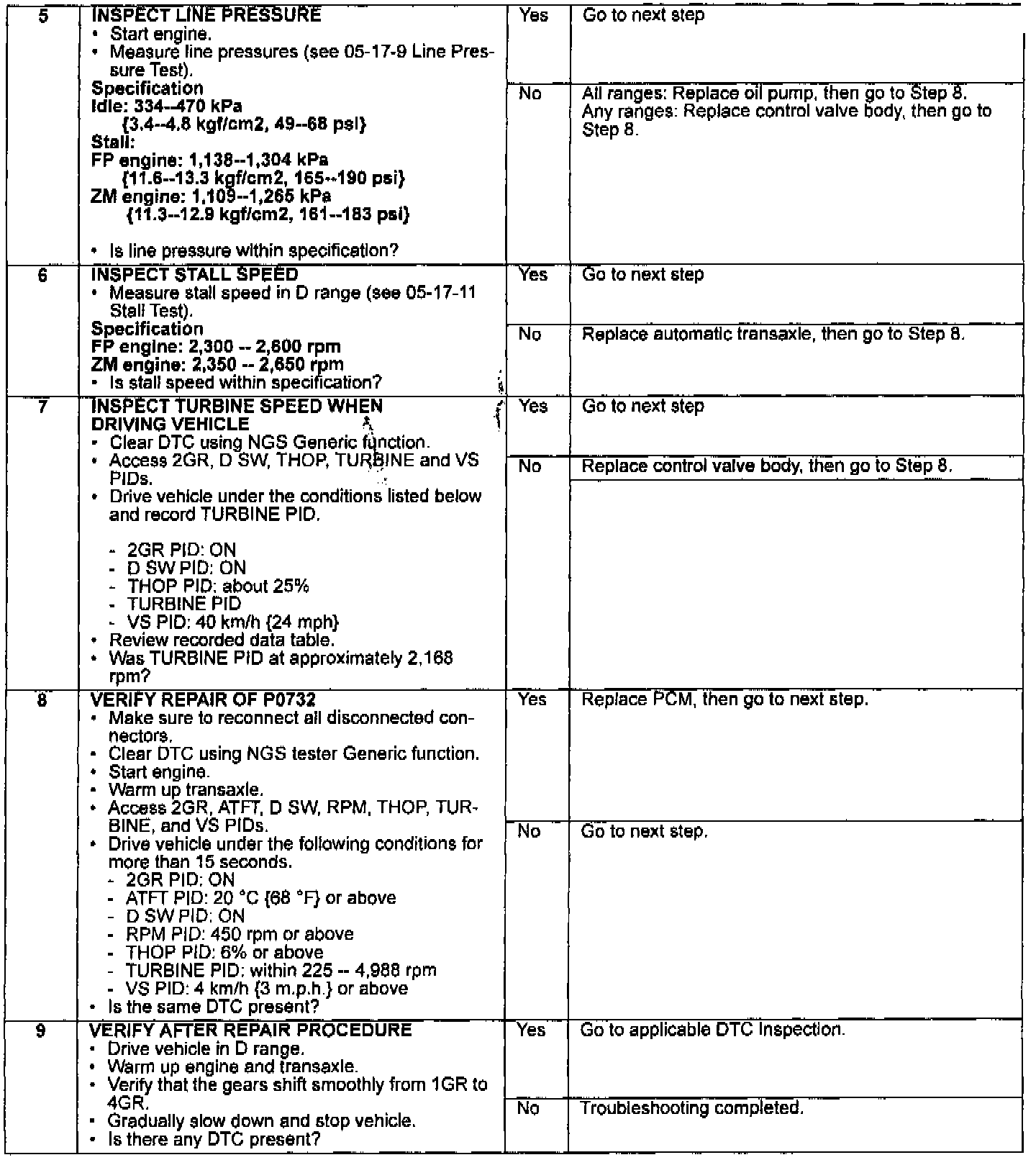 NOTE: If DTCs P0732, P0733, and/or P0734 re-appear, use the service diagnostics illustrated. A Workshop Manual update will be issued which will contain these diagnostics.
