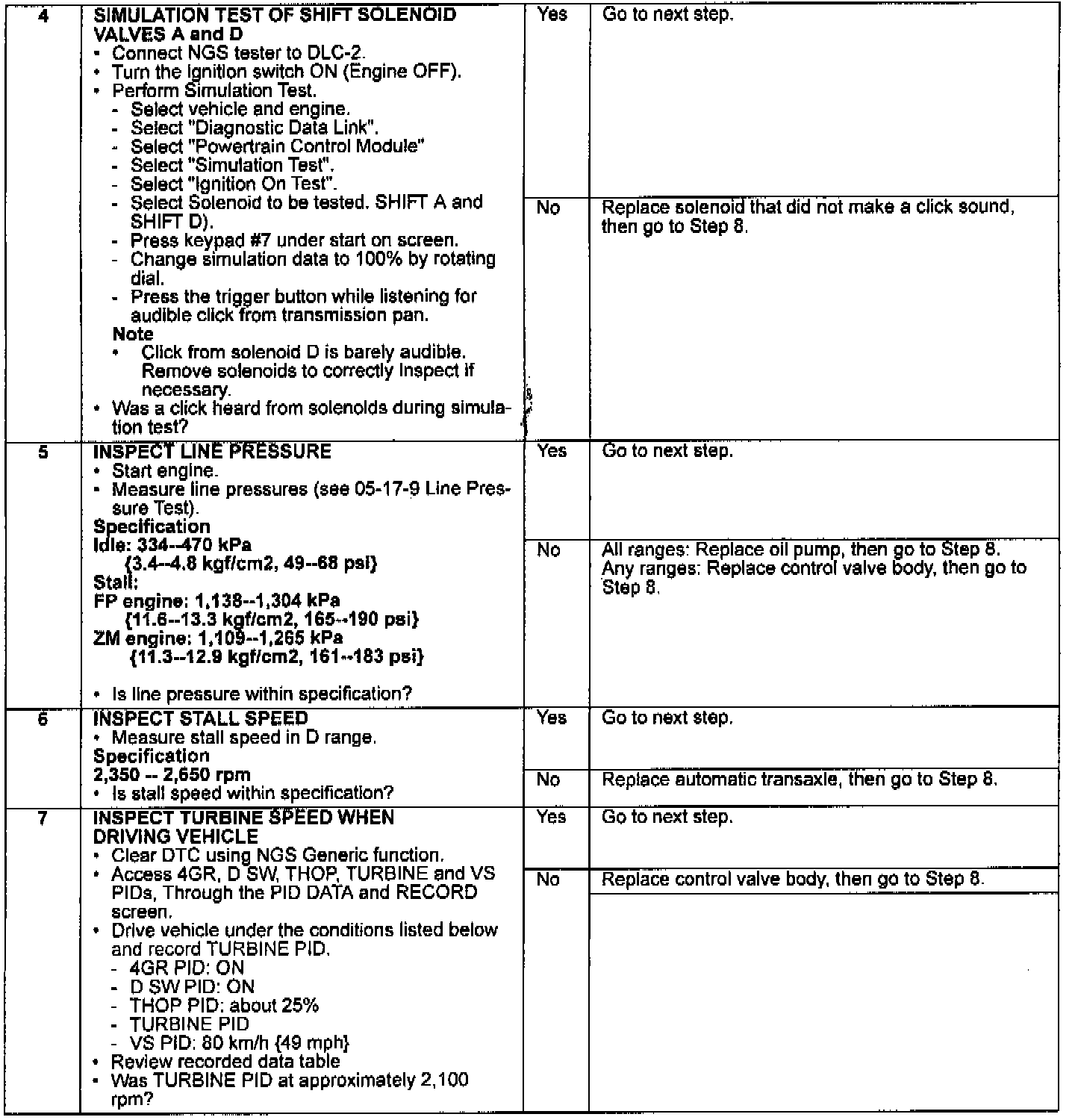 3. Erase DTC and perform the following drive mode to identify actual cause (i.e. shift solenoid, control valve, etc.).