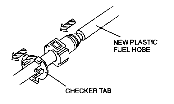 NOTE: A checker tab is integrated with the quick release connector for new plastic fuel hoses. The checker tab will be released from the quick release connector after it is completely engaged with the fuel pipe.