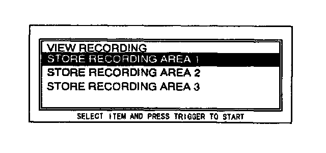 9. Move the cursor to STORE RECORDING IN AREA 1. Press the trigger key.