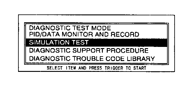 4. Move the cursor to SIMULATION TEST. Press the trigger key to enter this selection.