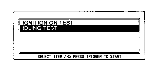 5. Move the cursor to IDLING TEST. Press the trigger key to enter this selection.