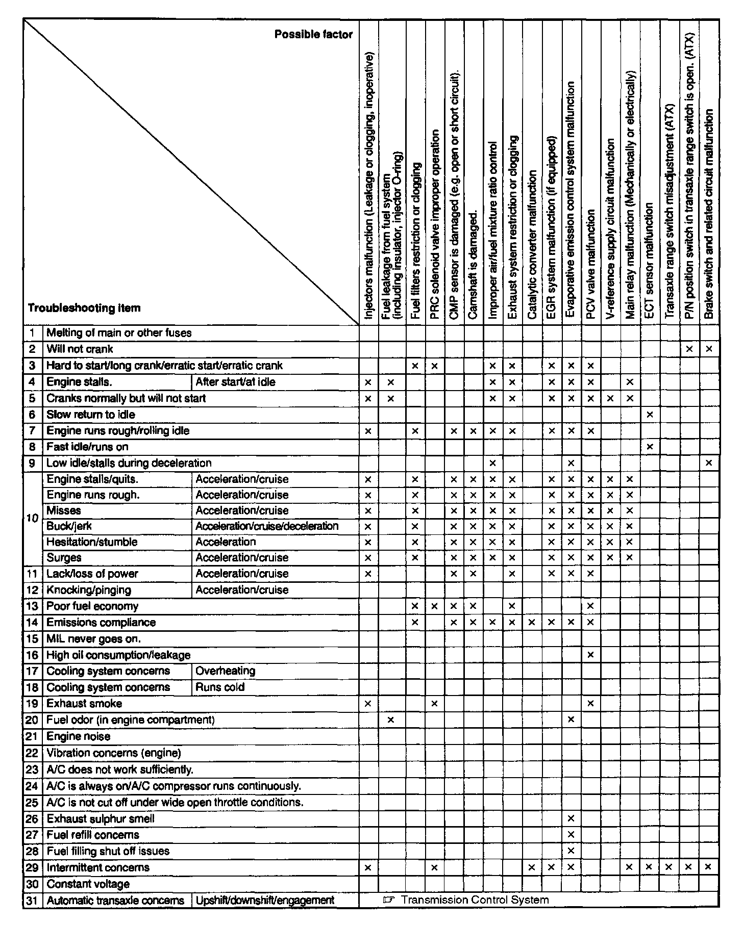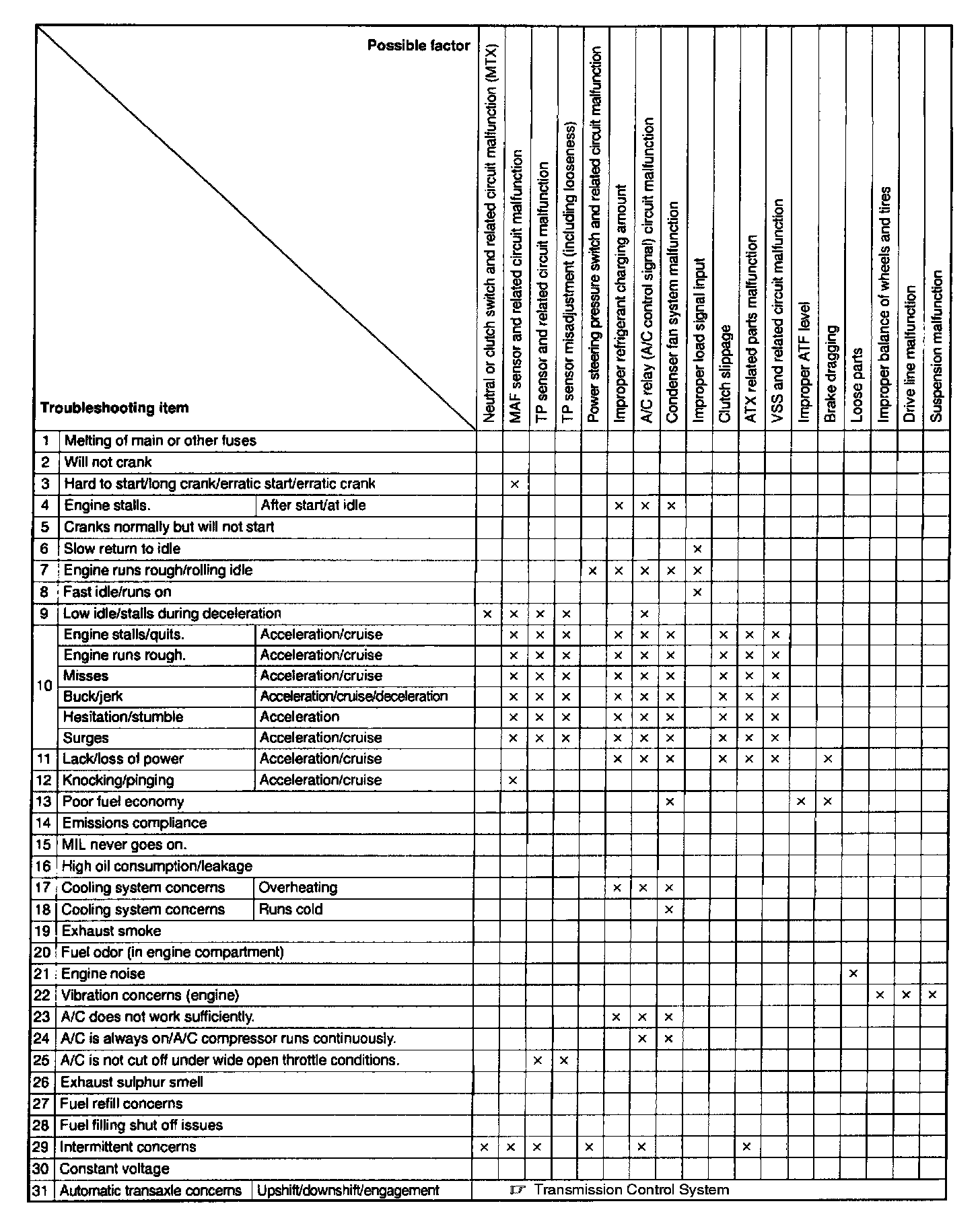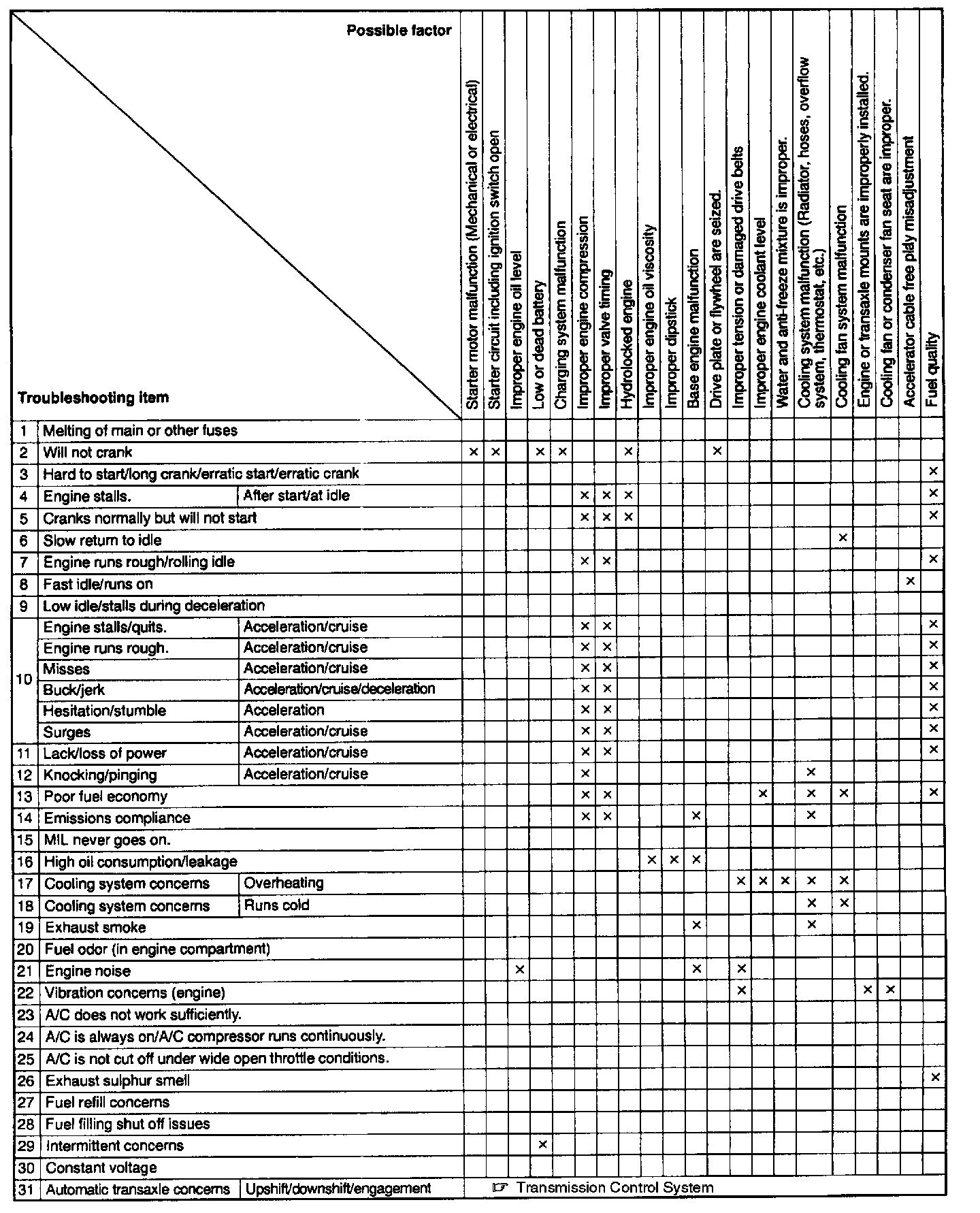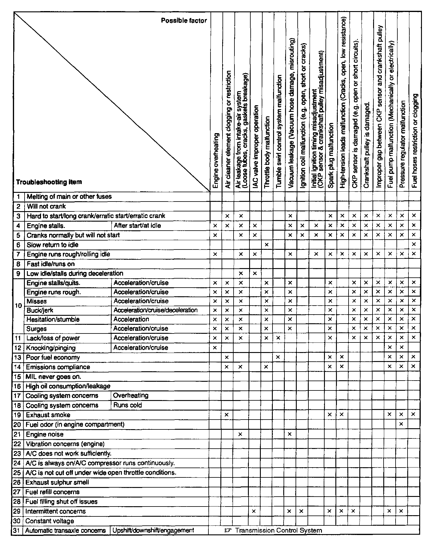 Quick Diagnostic Symptom Chart