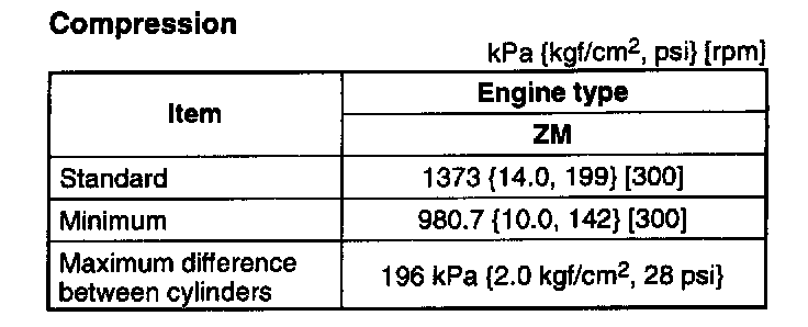 - If the compression in one or more cylinders is low or the compression difference between cylinders exceeds the maximum, pour a small amount of clean engine oil into the cylinder and reinspect the compression.