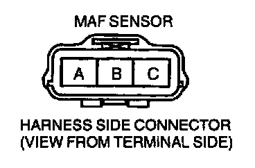NOTE: Perform the following test only when directed.1. Visually inspect for damage, cracks, terminal bends and terminal rust on the MAF sensor.