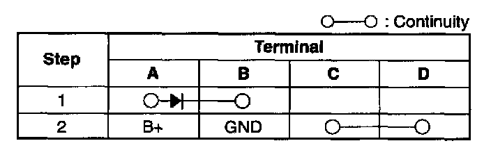 3. Inspect for continuity between terminals of the relay using an ohmmeter.