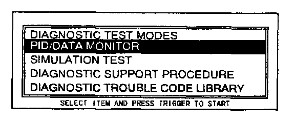 4. Move the cursor to PID/DATA MONITOR AND RECORD. Press the trigger key to enter this selection.
