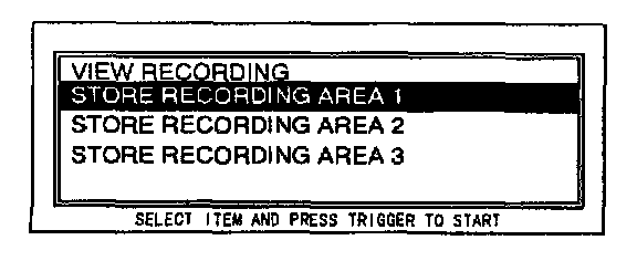 9. Move the cursor to STORE RECORDING IN AREA 1. Press the trigger key.