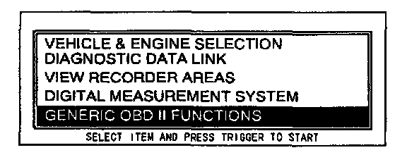 2. Move the cursor to GENERIC OBDII FUNCTIONS. Press the trigger key to enter this selection.