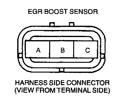 - EGR boost (Barometric pressure) signal circuit (EGR boost sensor connector terminal A and PCM connector terminal 34)