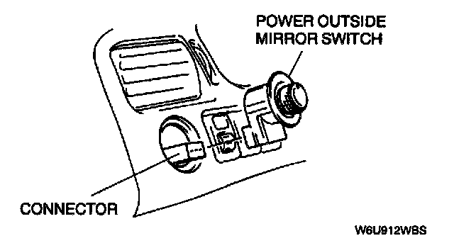 1. Disconnect the negative battery cable.2. Insert a tape-wrapped, flathead screwdriver between the power outside mirror switch and the meter hood.