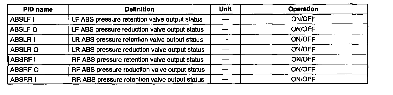 PID/DATA Monitor Table