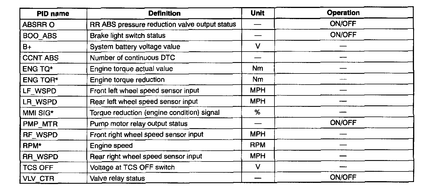 PID/Data Monitor Table