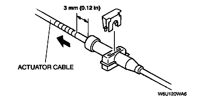 3. Then loosen the actuator cable until an approximately 3 mm {0.12 in} free play is obtained.