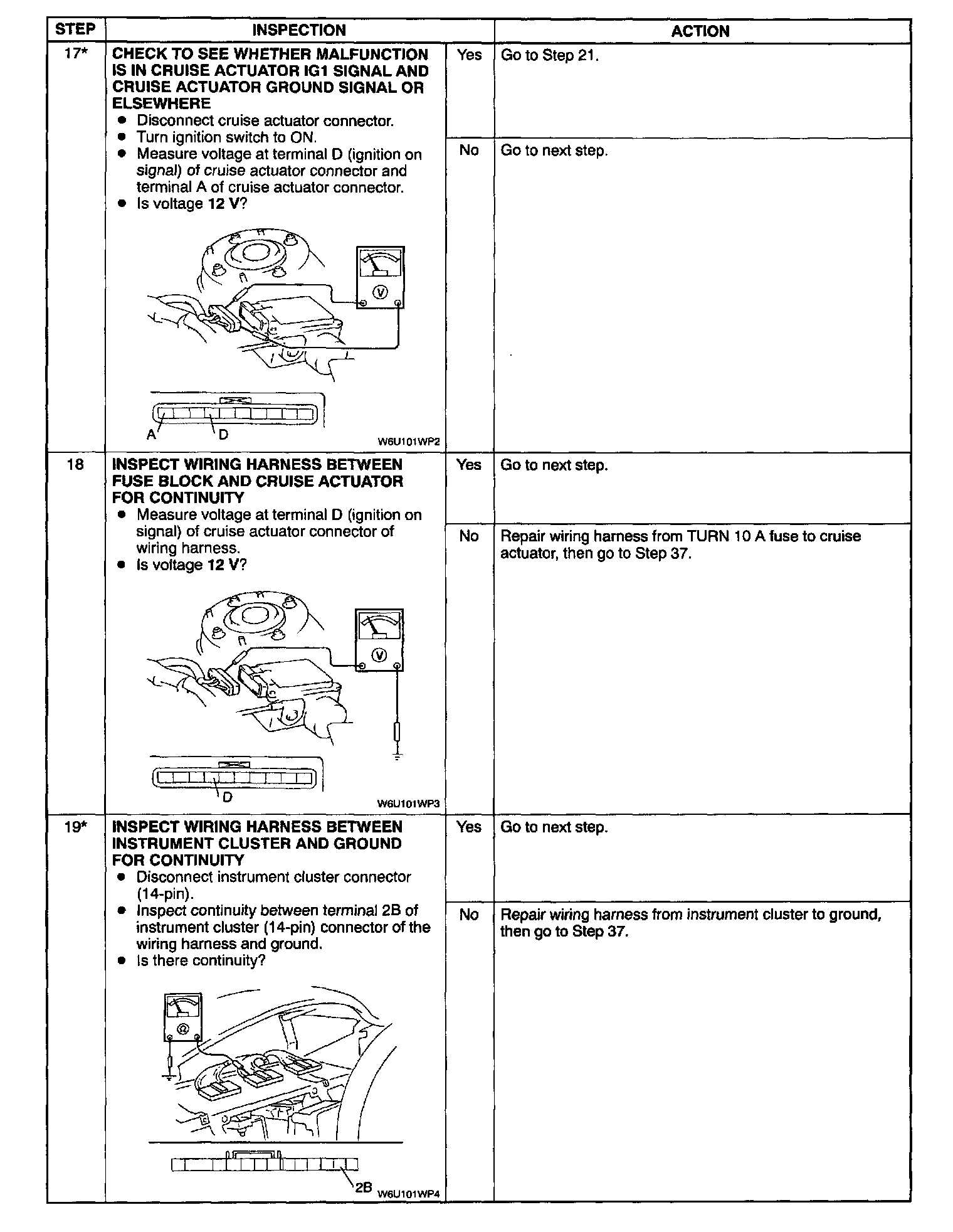 When performing an asterisked(*) troubleshooting inspection, shake the wiring harness and connectors while doing the inspection to discover whether poor contact points are the cause of any intermittent malfunctions. If there is a problem, check to make sure connectors, terminals and wiring harness are connected correctly and undamaged.