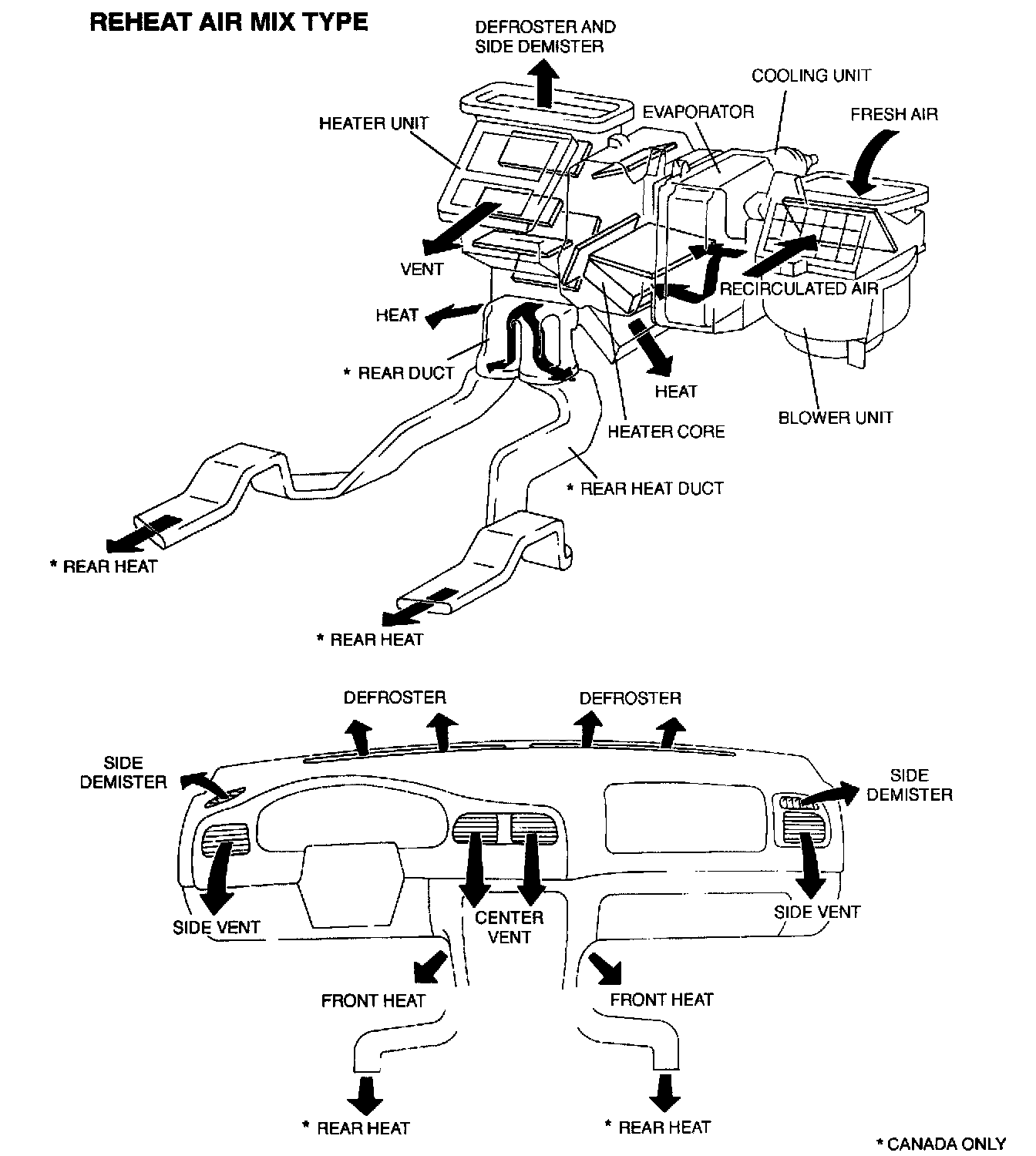 - The air passes the blower unit, cooling unit, and heater unit then blows from each vent into the passenger compartment.