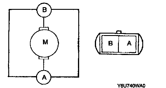 2. Connect battery positive voltage to terminal B and ground to terminal A of the condenser fan and verify its operation.