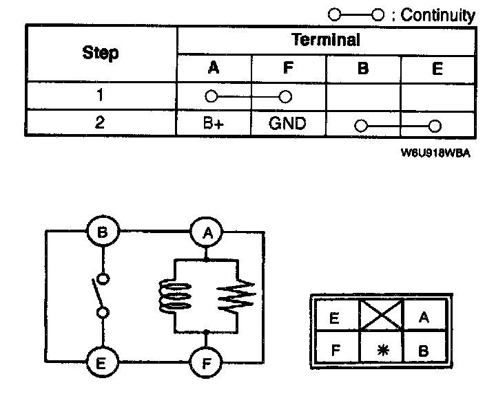 3. Check for continuity between the TNS relay terminals by using an ohmmeter.