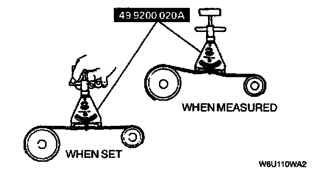 1. Belt tension can be verified in place of belt deflection. Verify the drive belt tension when the engine is cold, or at least 30 minutes after the engine has stopped. Using the SST, verify the belt tension between any two pulleys.