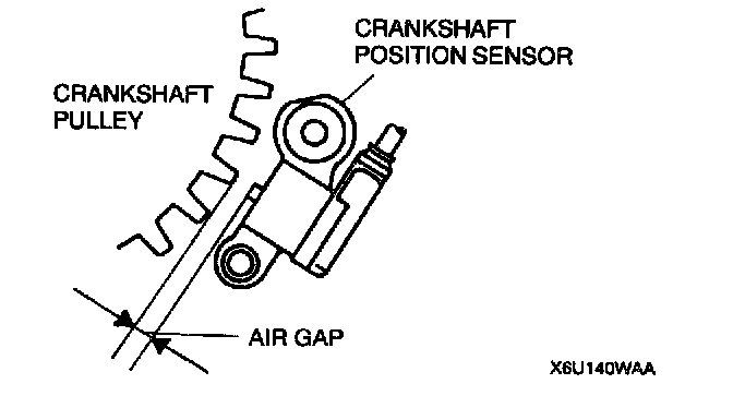 1. Verify that the crankshaft position sensor is installed correctly and securely.2. Measure the air gap between the crankshaft pulley teeth and the crankshaft position sensor by using a feeler gauge.
