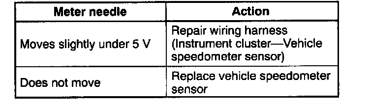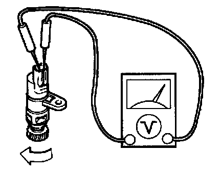 2. Measure the voltage between terminals of the vehicle speedometer sensor while rotating the driven gear by hand.