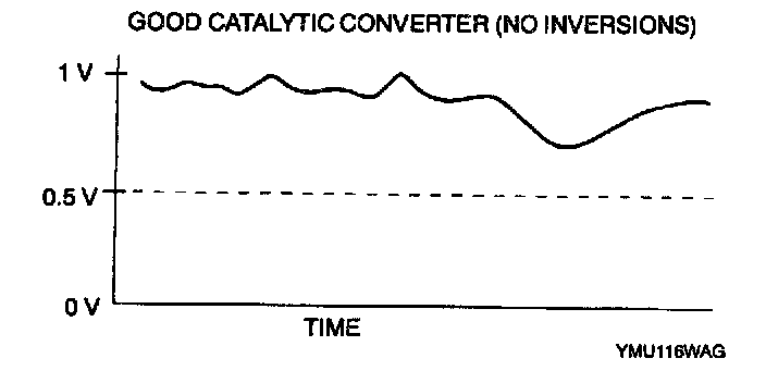 RATIO = 26 Inversions (upstream HO2S Inversions) / 19 Inversions (downstream HO2S inversions) = 1.4 (bad converter)