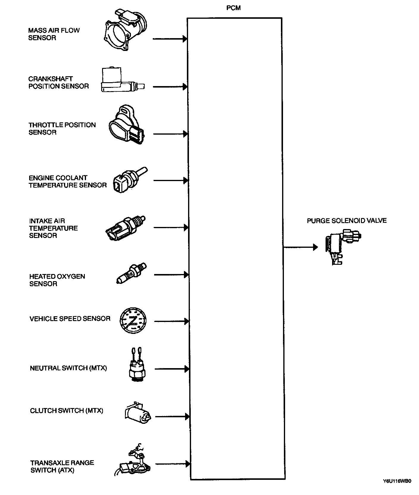 - The PCM sends a duty signal to the purge solenoid valve to control the purge amount.