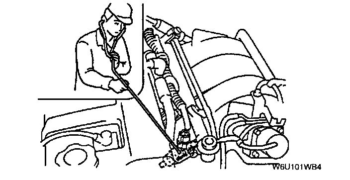 3. Check if there is no operational sound from each injector with a screwdriver or a sound scope when the engine speed is above approx. 2,500 rpm on deceleration.