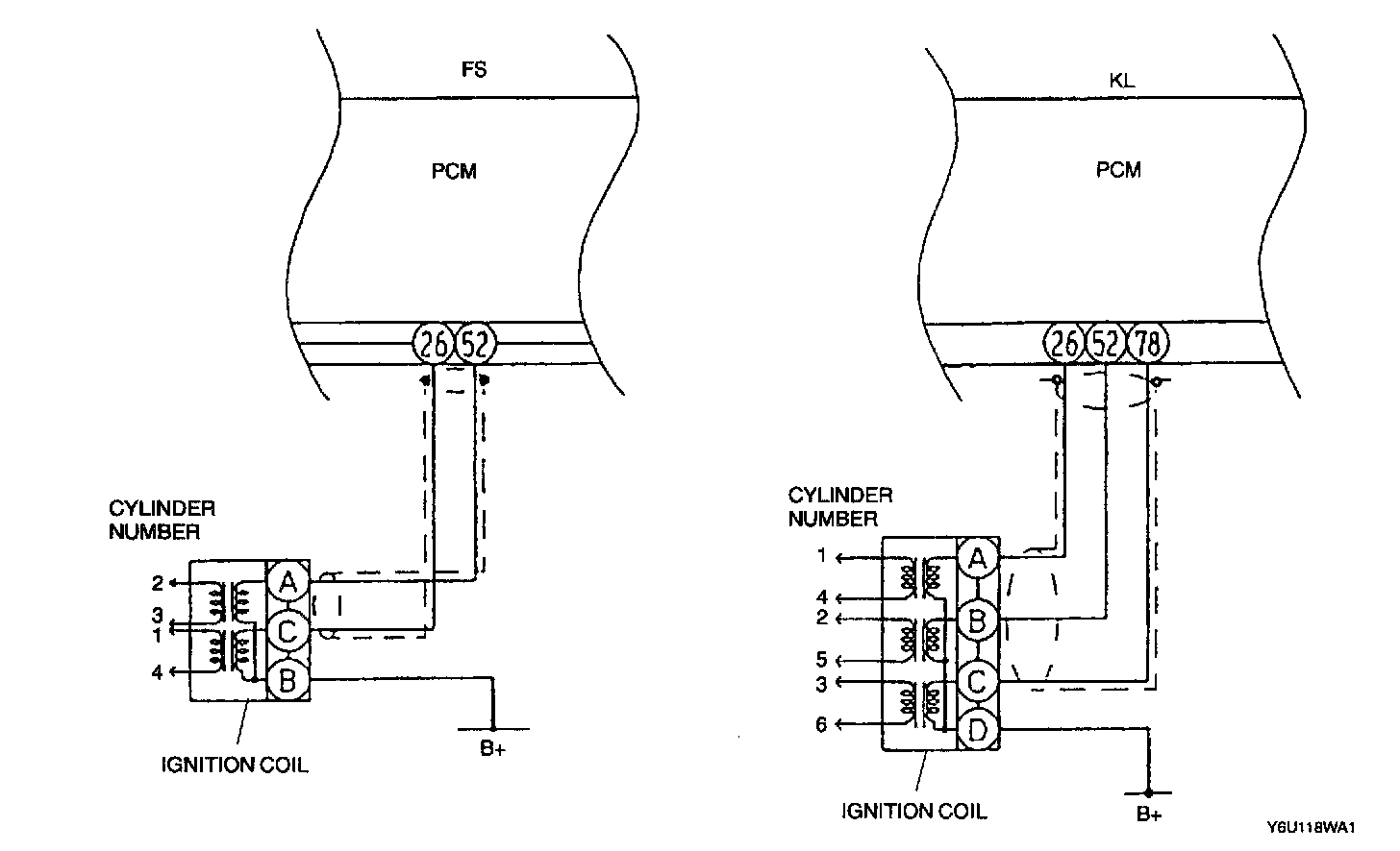 - Each coil ignites two spark plugs at the same time.