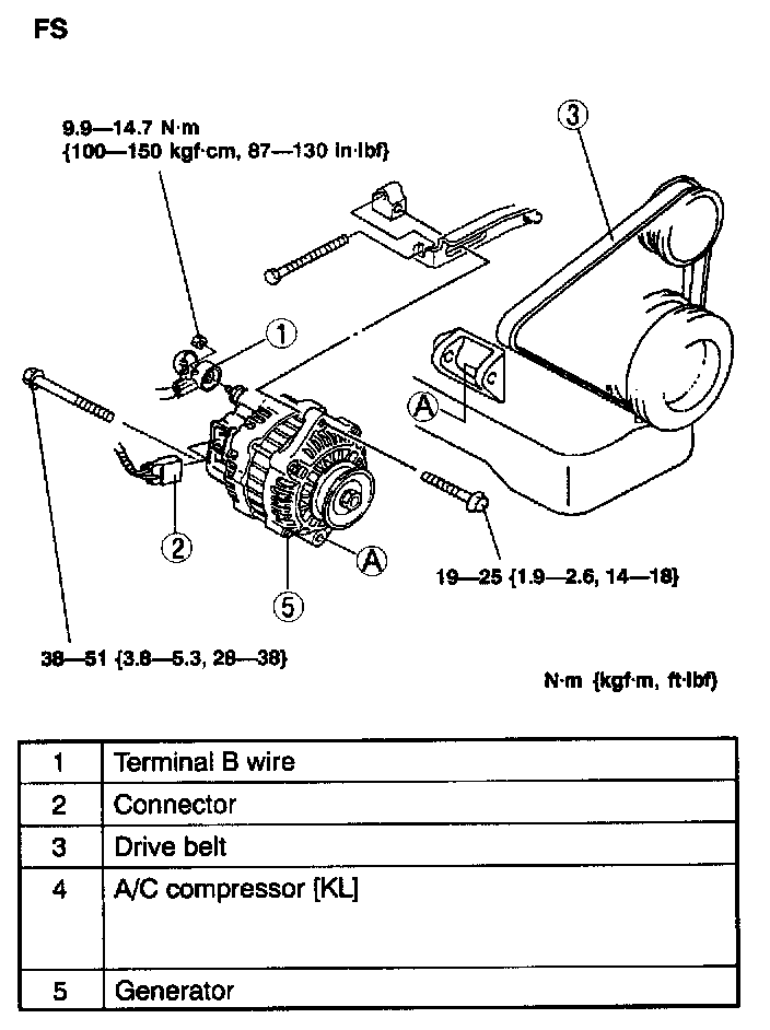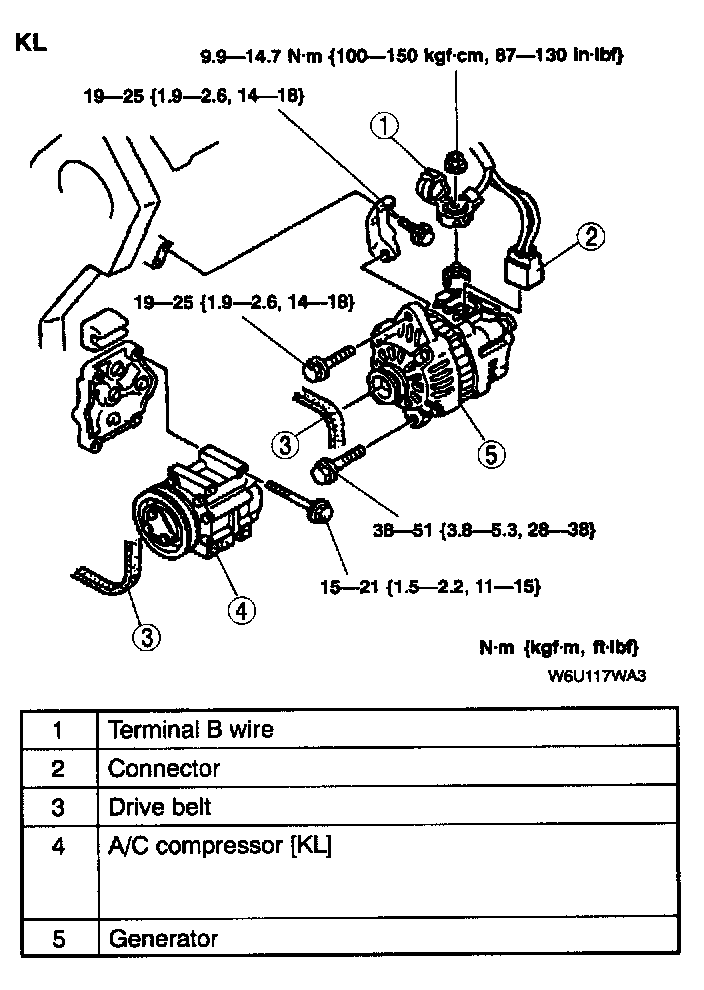WARNING: When the battery cables are connected, touching the vehicle body with generator terminal B will generate sparks. This can cause personal injury, fire, and damage to the electrical components. Always disconnect the battery before performing the following operation.