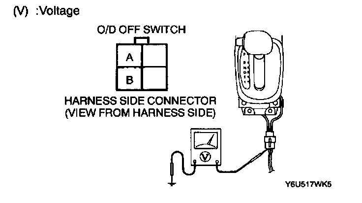 3. Measure voltage at the O/D OFF switch connector terminals.