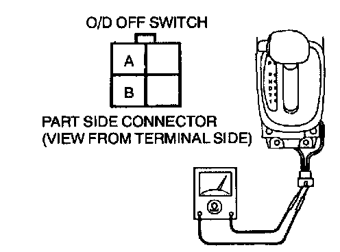 - If not as specified, inspect the continuity of the O/D OFF switch.