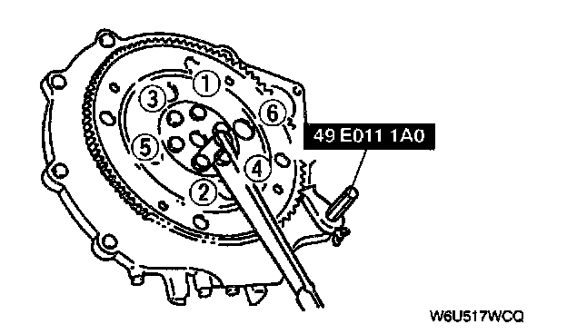 3. Tighten the drive plate mounting bolts in two or three steps in the order shown.