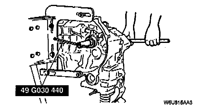 - Align the groove for removal of the clutch housing pin with the position of the roll pin, then tap the pin out by using a pin punch.