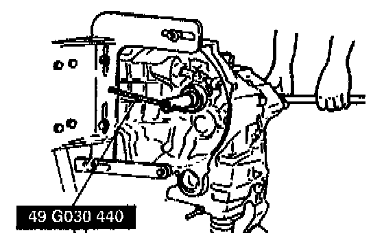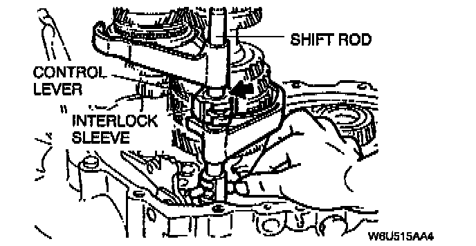 1. Align the ends of the interlock sleeve and of the control lever (arrow). Turn the shift rod counterclockwise.