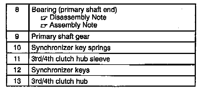1. Preinspect the thrust clearance of 3rd gear and 4th gear before disassembly. (Refer to Primary Shaft Component Preinspection.)