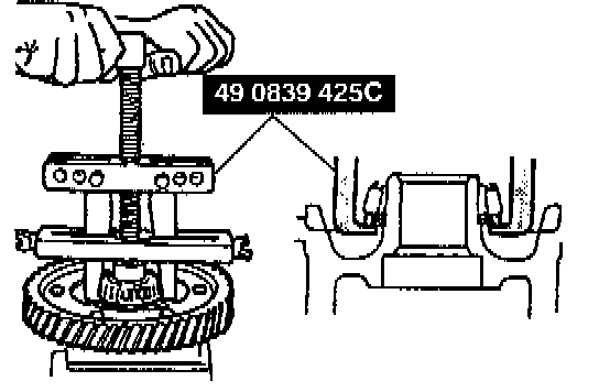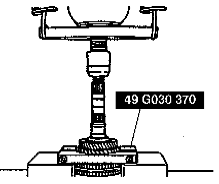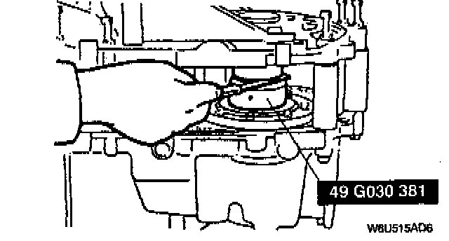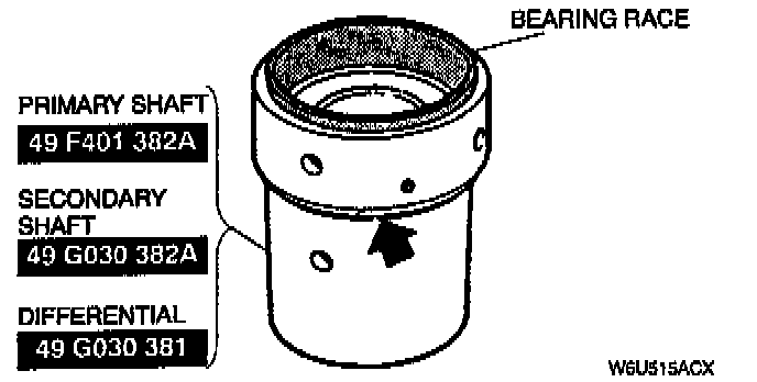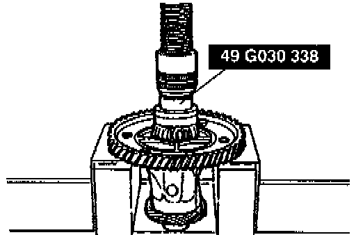 5. Set the differential component into the clutch housing, and set the bearing race and the SST (49 G030 381) on the differential.