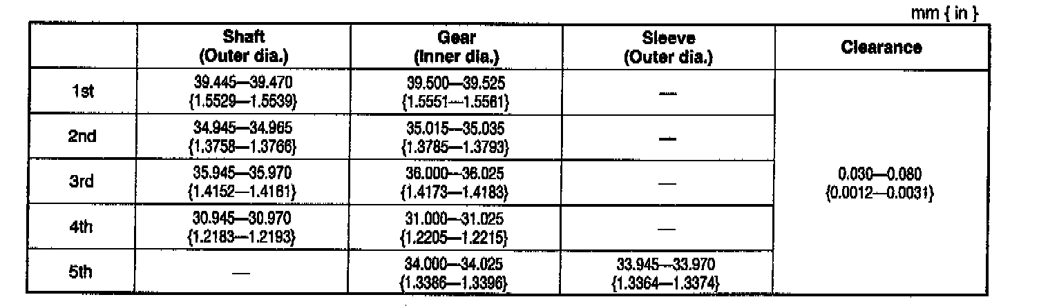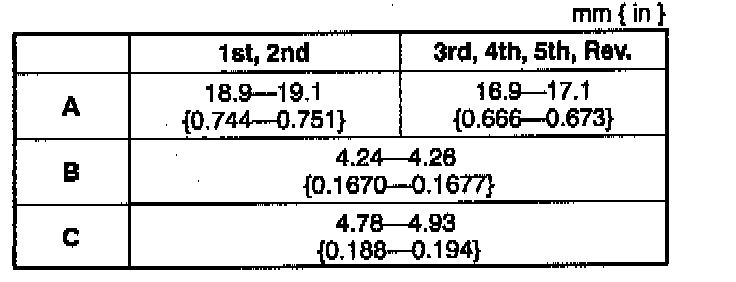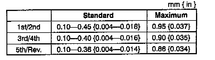 2. If the clearance exceeds the maximum, inspect the contact surfaces of the 2nd gear, secondary 3rd gear, and 1st/2nd clutch hub component. Replace worn and damaged parts.