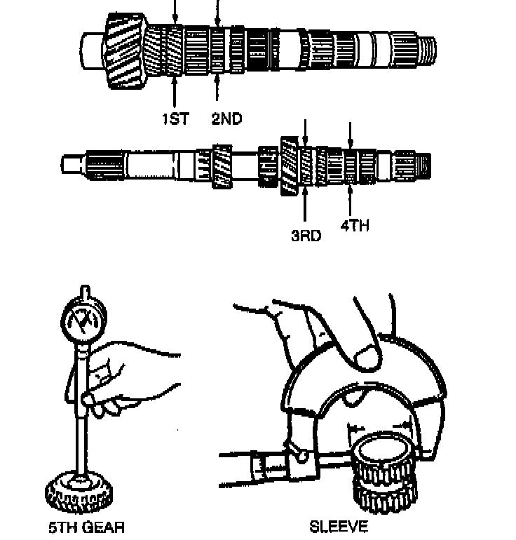 1. Measure the clearance between the 2nd gear and secondary 3rd gear.