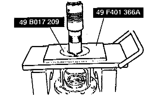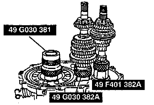 4. Set the bearing races into the SSTs (49 F401 382A, 49 G030 382A, and 49 G030 381) as shown in the figure.